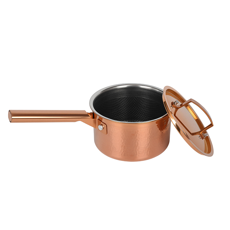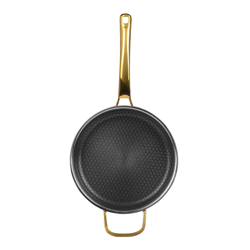 2. Mientras tanto, la superficie se trata con tecnología PVD (deposición física de vapor), lo que hace que la superficie exterior sea más resistente al desgaste, a la corrosión y a altas temperaturas. Esto prolonga la vida útil de la olla y al mismo tiempo le da al producto un temperamento más sofisticado.