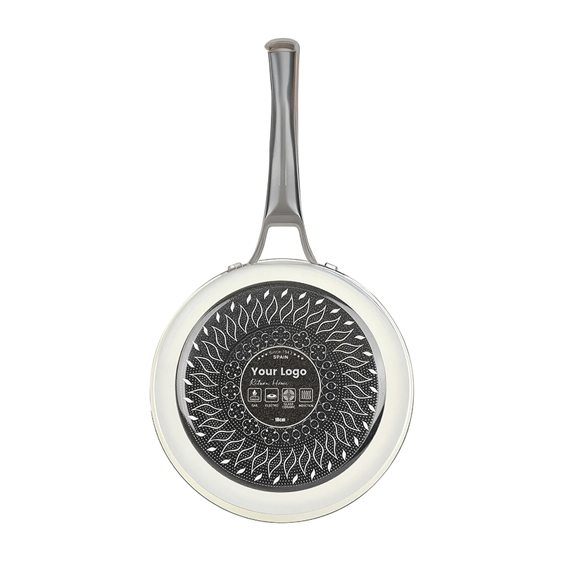4. Para el fondo exterior de la olla, ofrecemos una gama de patrones impresos prediseñados. Si tienes un patrón personalizado en mente, también podemos crearlo según tus preferencias. Además, podemos imprimir su logotipo exclusivo en cualquier parte de los utensilios de cocina —ya sea el cuerpo de la olla, la tapa de vidrio o el mango.