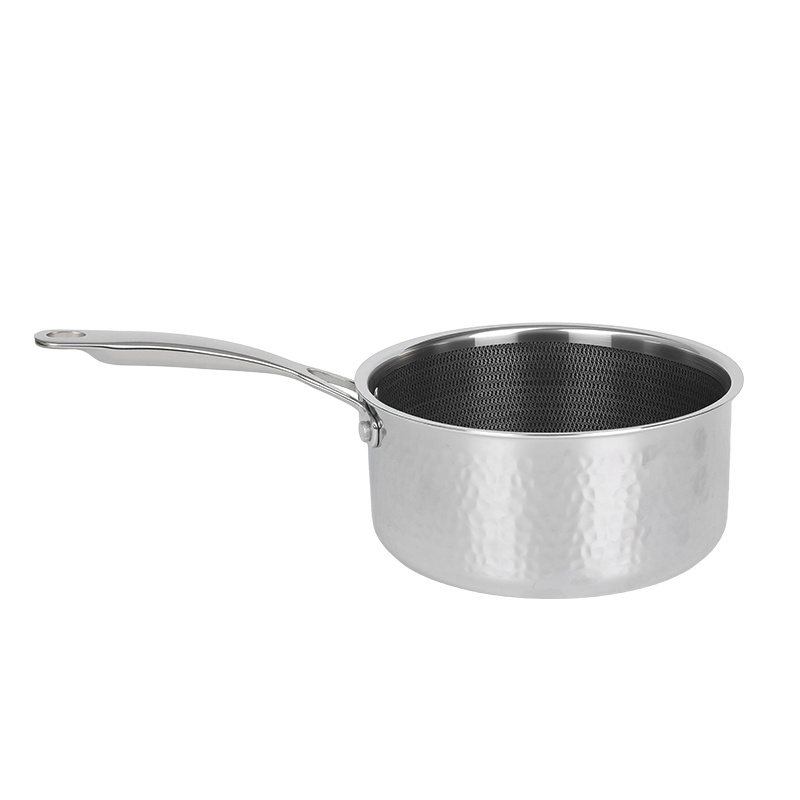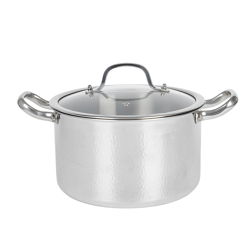 La textura martillada adorna los utensilios de cocina con patrones cóncavos-convexos cuidadosamente dispuestos —como motivos de escamas de pescado o panales—, lo que hace que cada pieza sea única y única. Más allá de la mera funcionalidad, este detalle textural distintivo infunde a los utensilios de cocina un encanto artístico exquisito, elevándolos de una simple herramienta de cocina a una impresionante obra de arte decorativa. Además, el exterior pulido garantiza una limpieza sin esfuerzo, lo que reduce significativamente el tiempo de limpieza posterior a la cocción.