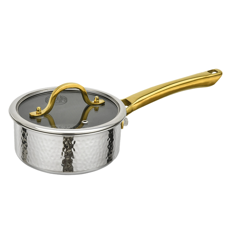 1. Se trata de una cacerola para leche de alta gama que presenta una textura martillada en el exterior, un revestimiento de panal grabado en el interior y un mango y una perilla de tapa con acabado PVD. Como otra de nuestras ofertas premium que ha ganado popularidad en los principales mercados globales, ofrece un rendimiento excepcional desde todos los puntos de vista. Hemos conseguido un equilibrio meticuloso en todos los aspectos— desde la selección de la materia prima y el tratamiento de superficies internas/externas hasta la fabricación de accesorios. En resumen, independientemente del país o región en el que opere como socio comercial, se garantiza que este producto impulsará un sólido desempeño de ventas en su mercado local.
