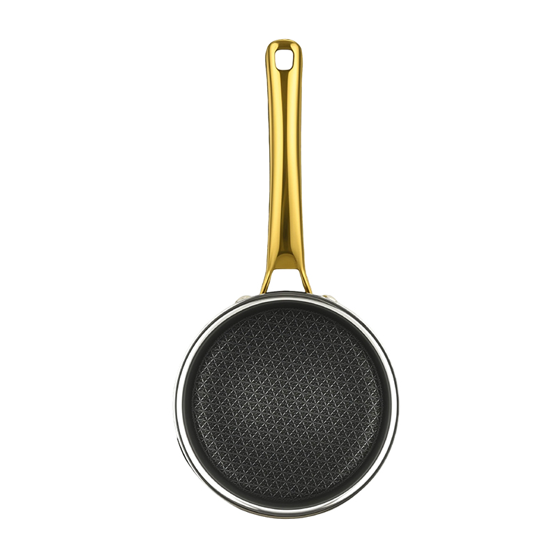 2. En concreto, la estabilidad estructural del acabado martillado, la destacada propiedad antiadherente del revestimiento de panal grabado, la resistencia al desgaste y la seguridad humana, además de la elegante estética del mango de acero inoxidable con acabado PVD—, todos estos atributos funcionan en armonía para lograr un equilibrio perfecto entre practicidad, seguridad para la salud y atractivo visual.