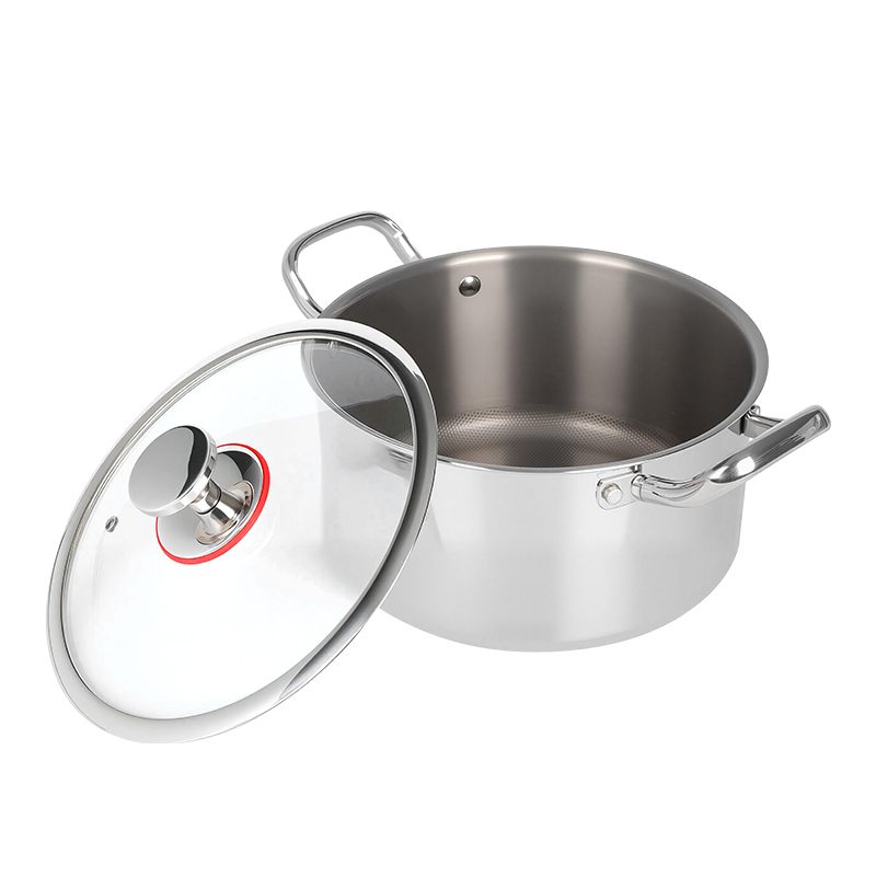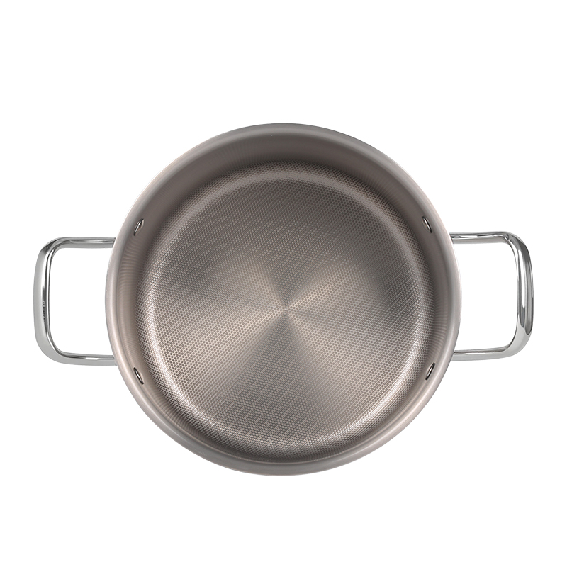 2. ¿Qué ventajas específicas ofrece? En primer lugar, la fina conductividad térmica del material de acero inoxidable de 3 capas se combina perfectamente con la distribución uniforme del calor del revestimiento de panal grabado, lo que permite una experiencia de cocción más sencilla. En segundo lugar, la propiedad antiadherente del revestimiento de panal grabado se fusiona perfectamente con la naturaleza completamente libre de flúor del revestimiento de plasma de titanio, lo que garantiza que el producto cumpla con los más altos estándares de salud y no toxicidad.