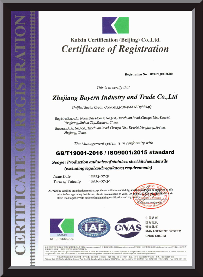 Zhejiang Bairen Industry and Trade Co., Ltd. está ubicada en la zona industrial de Huachuan, ciudad de Yongkang, provincia de Zhejiang. Fuimos fundados en 2017, cubriendo una superficie de 8.000 metros cuadrados, con cerca de 300 empleados, principalmente dedicados al negocio de utensilios de cocina.