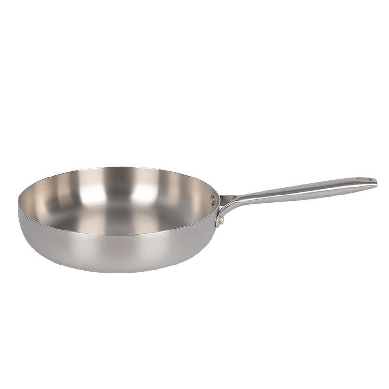 Esta sartén presenta un acabado pulido tanto en su superficie interior como exterior. Elaborado con una construcción de acero inoxidable de 3 capas de calidad alimentaria, nuestro producto cumple con estrictos estándares de seguridad, salud y no toxicidad —incluso sin la necesidad de ningún recubrimiento en aerosol.